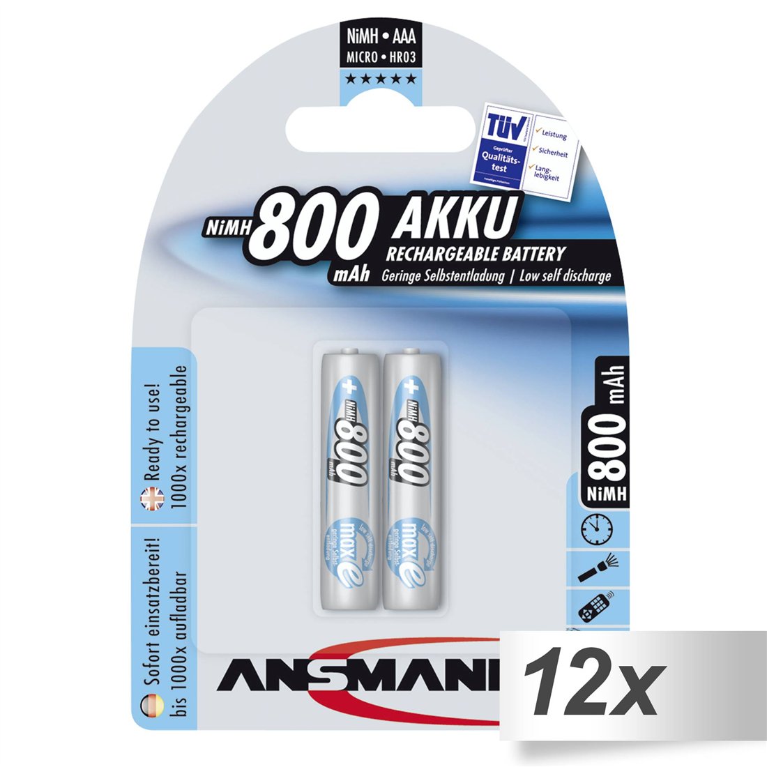 12x2 Ansmann maxE NiMH batt. Micro AAA 800 mAh