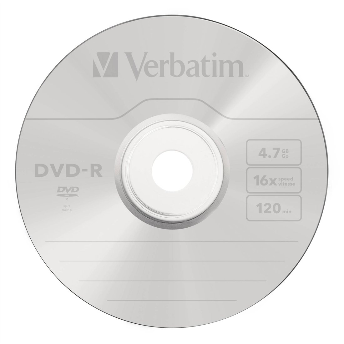 1x100 Verbatim DVD-R 4,7GB 16x Speed, opaco argento