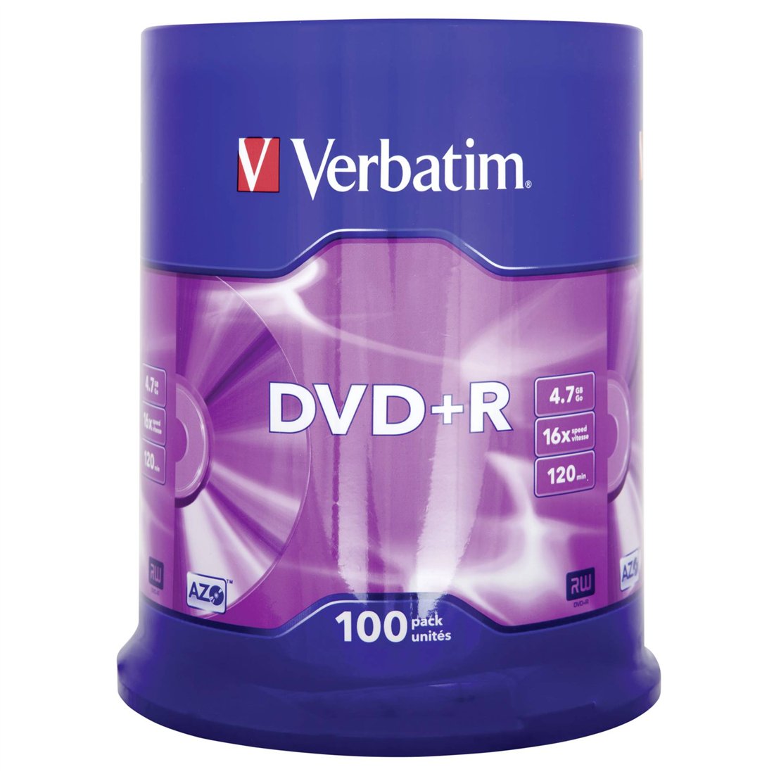 1x100 Verbatim DVD+R 4,7GB 16x Speed, opaco argento