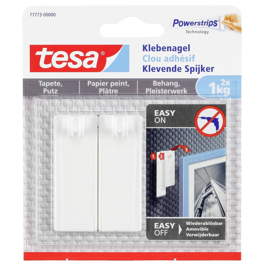 1x2 Tesa gancio adesivo per c. parati e intonaco(1 kg) 77773