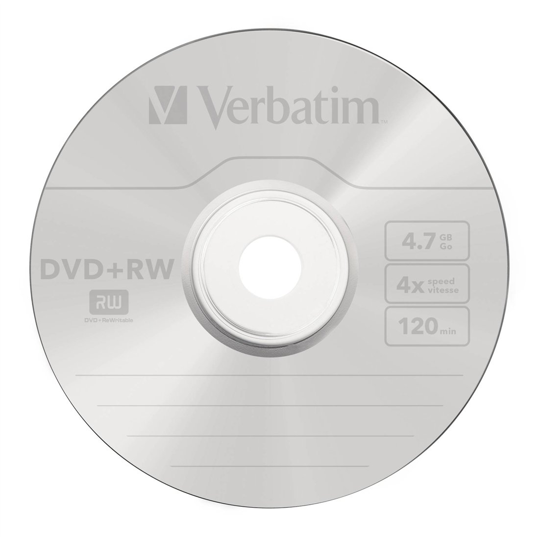 1x25 Verbatim DVD+RW 4,7GB 4x Speed, opaco argento