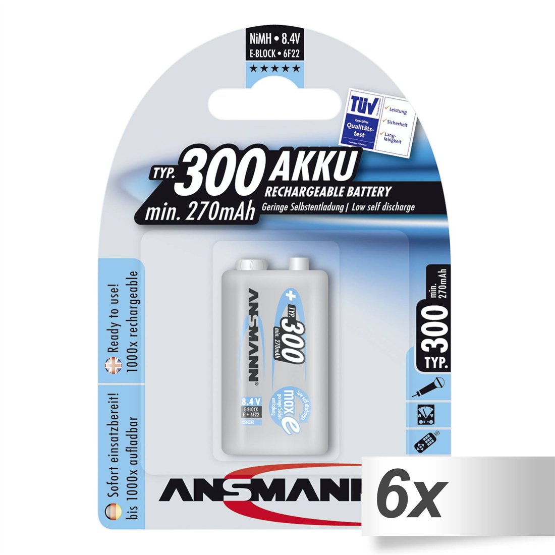 1x6 Ansmann maxE NiMH batt. 300 9V-Block 270 mAh