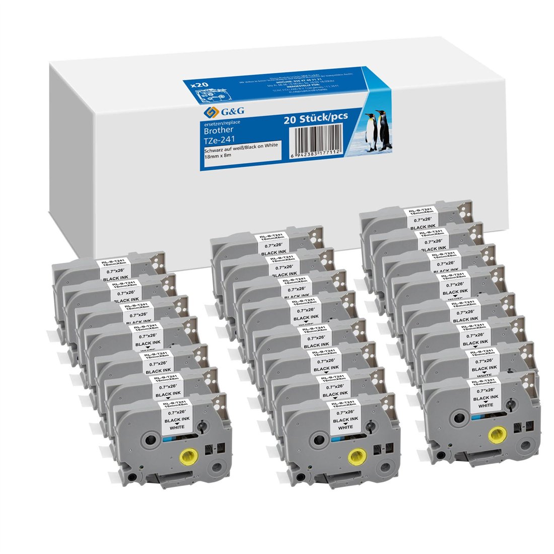 20x G&G nastro 18mm x 8m ne bi. comp. c. Brother TZe-241