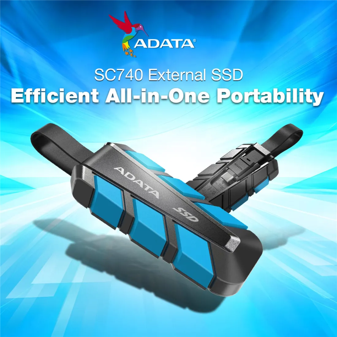 ADATA SSD esterno SC740 2TB Plug&Go blu 1050/1000 MIL.STD
