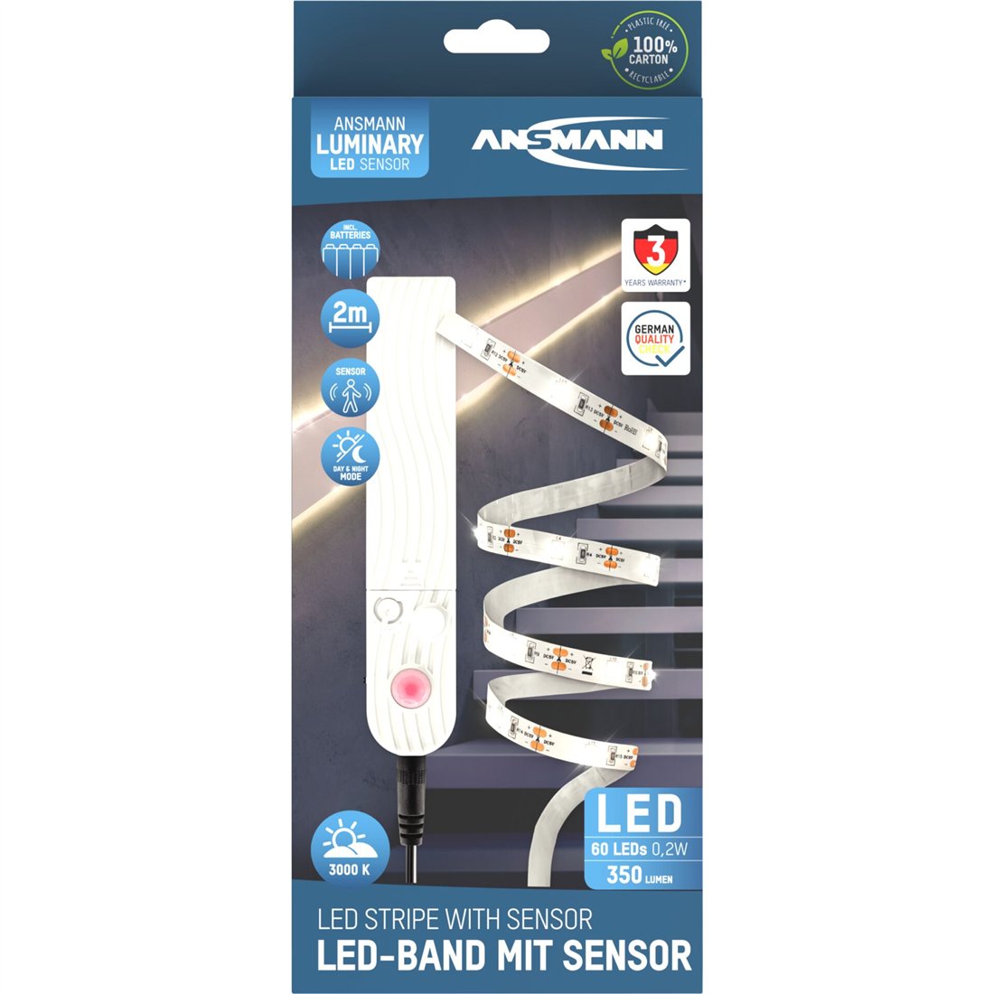 Ansmann striscia LED con sens.2m 60 LEDs bianco caldo 1600-0436
