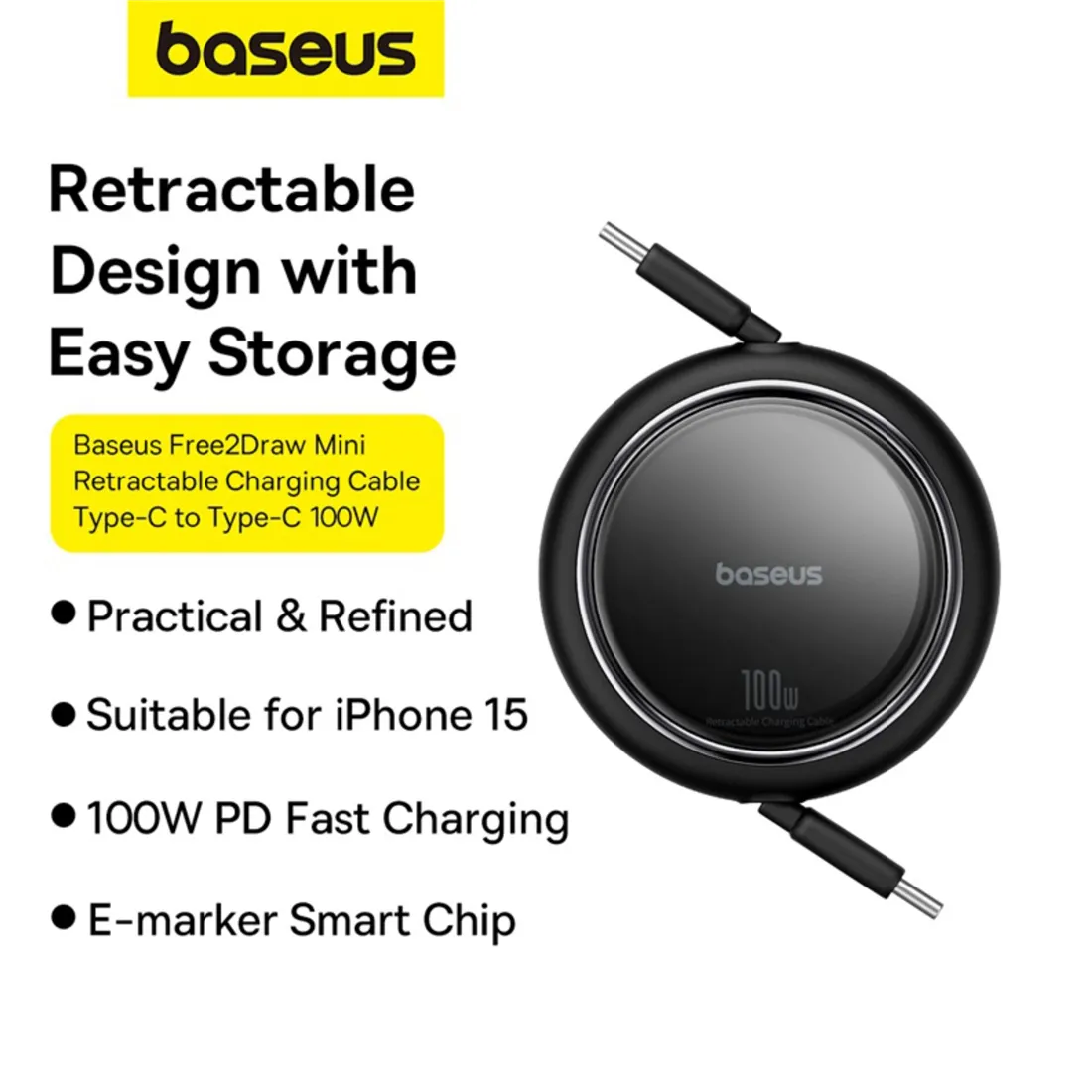 Baseus Free2Draw, ausziehbar Type-C auf Type-C 100W 1m