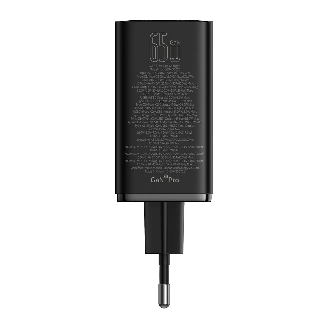 Baseus GaN6 Pro 65W EU incl. cavo di ricarica 1m