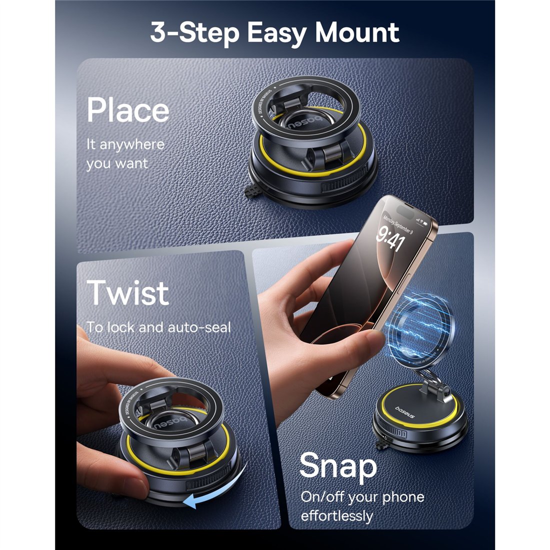 Baseus VC2 Flex Magnetic Car Mount Suction Cup Black