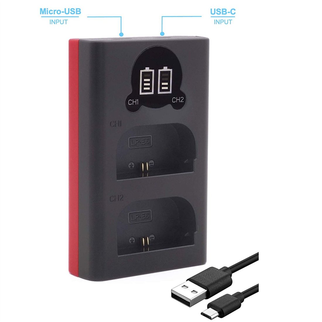 Baxxtar Pro caricabatt. LCD Dual per LP-E6
