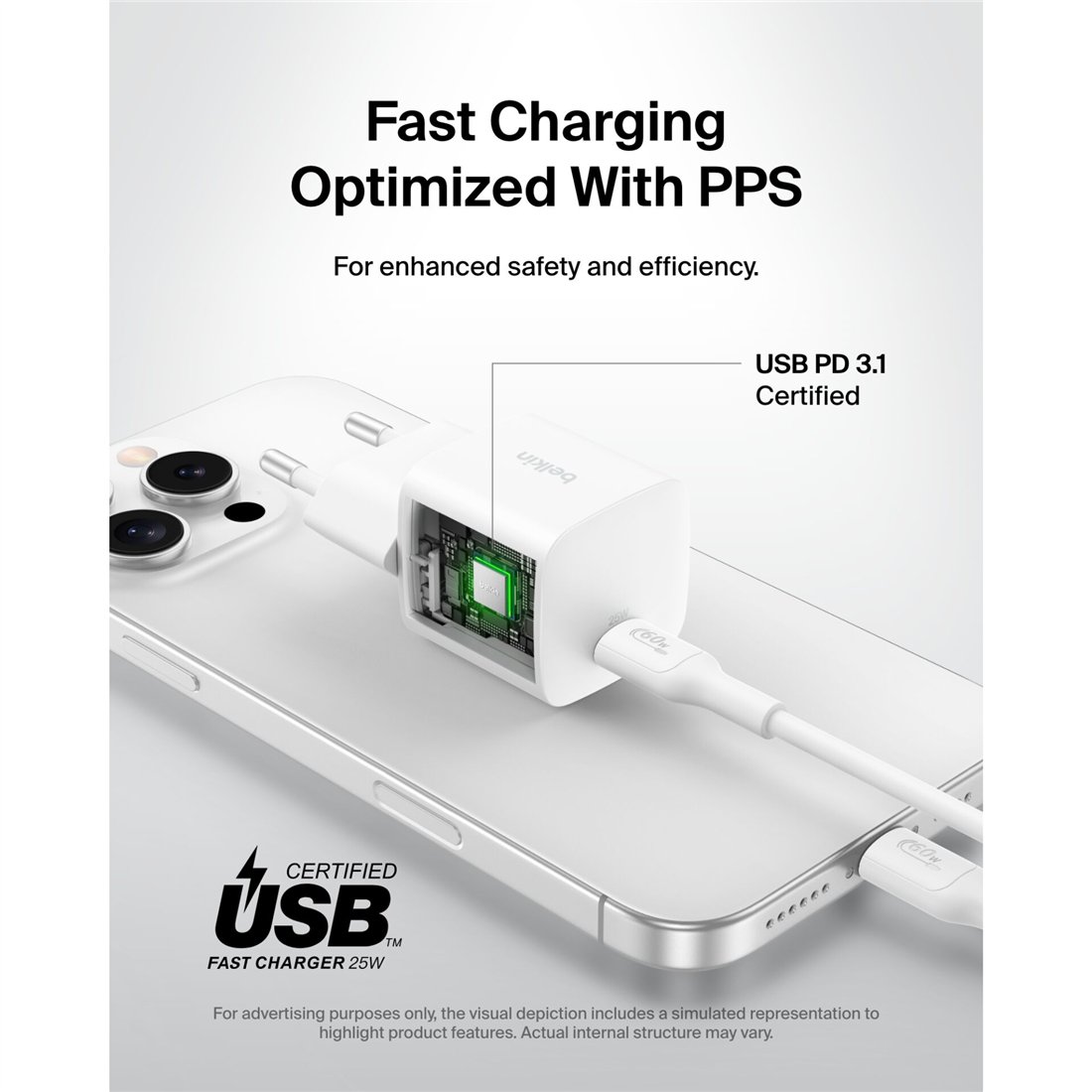 Belkin BOOST Charge 25W USB-C caricabatt. PD bian. WCA012kqWH