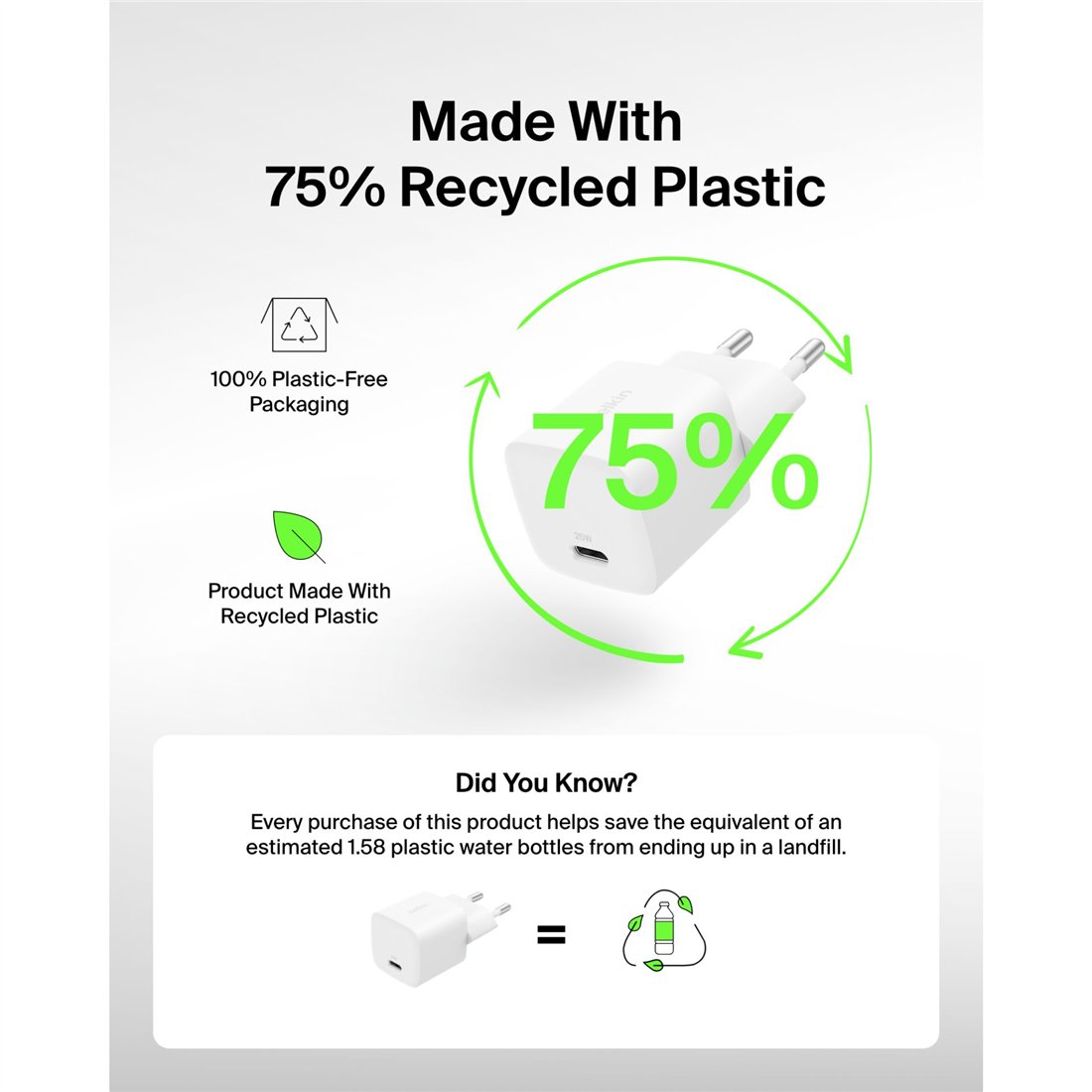 Belkin BOOST Charge 25W USB-C bi Lad.PD/PPS 1m K. WCA012kq1MWH-B6