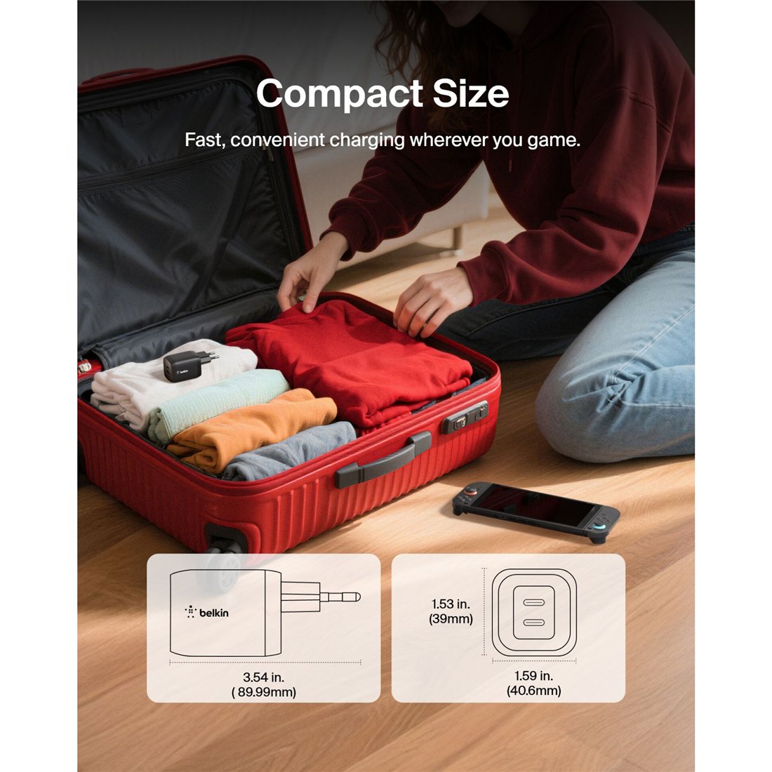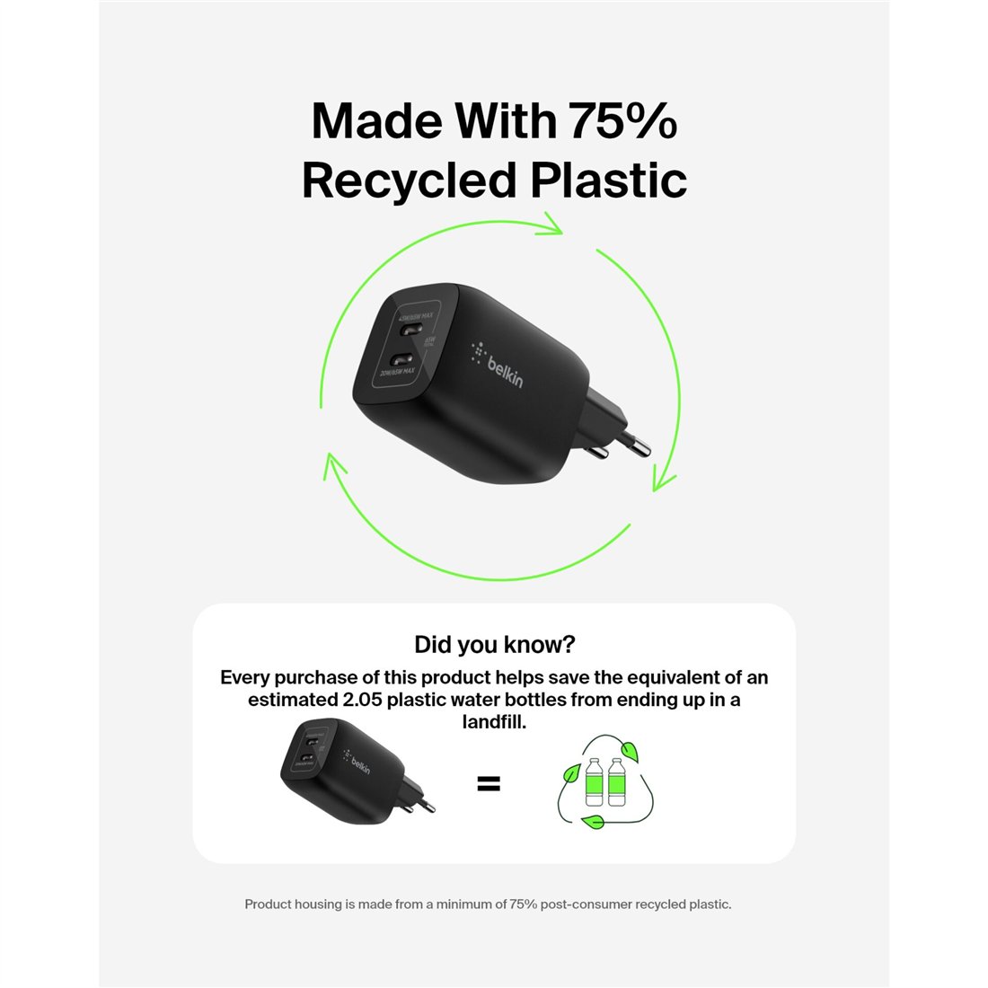Belkin Gaming USB-C caricatore 65 Watt, GaN nero ENA007kqBK