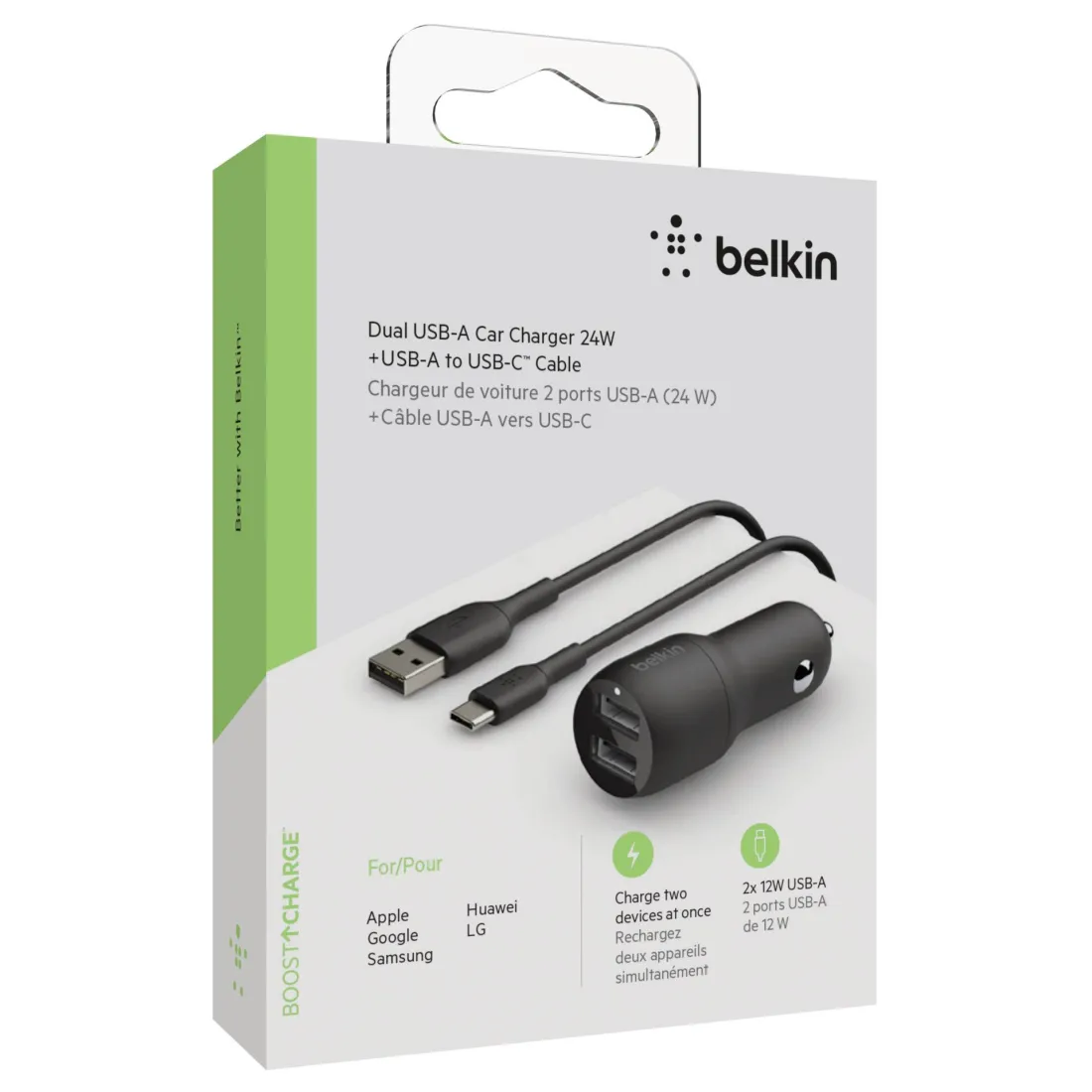 Belkin USB-A caricab. auto, 24W 1m cavo USB-C nero CCE001bt1MBW