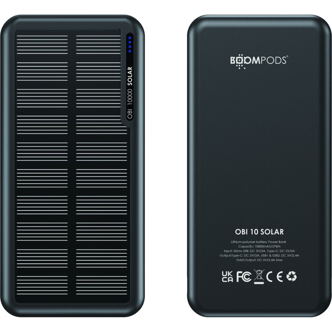 Boompods Obi 10,000mAh Solar Powerbank - nero