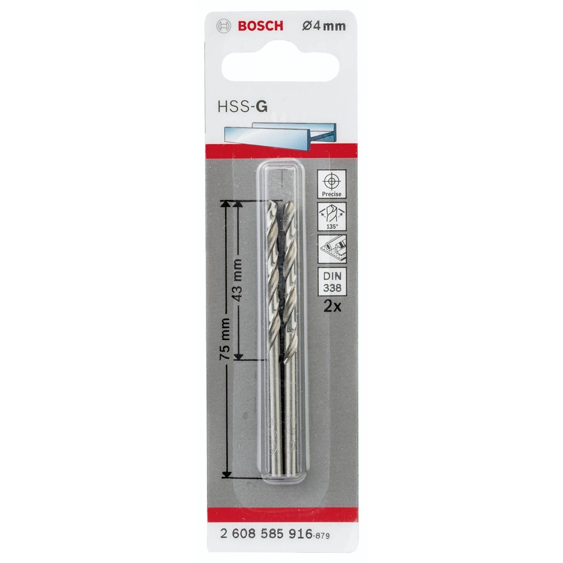 Bosch 2 punte per metallo HSS-G 4,0x43x75mm