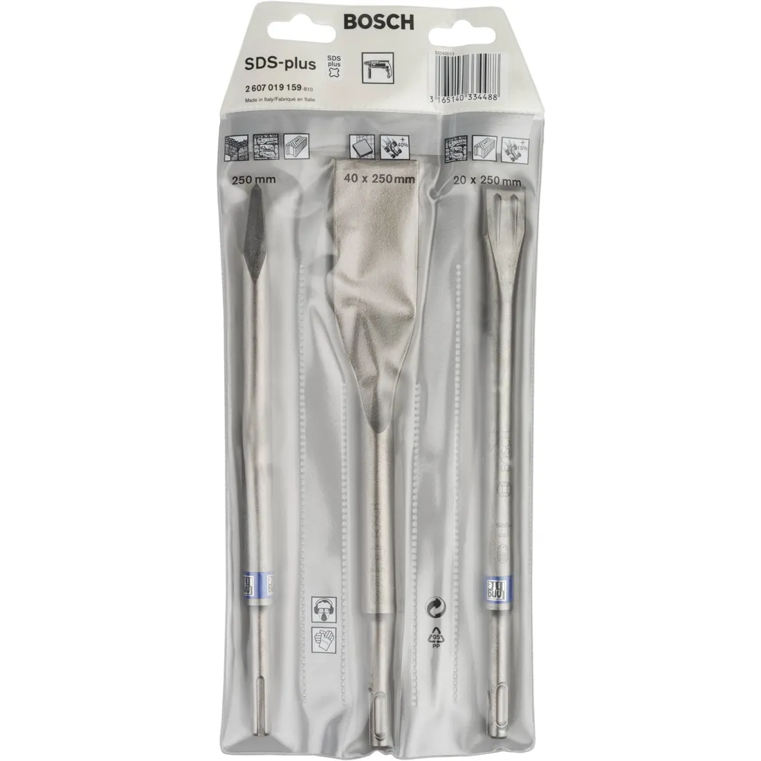 Bosch SDS-plus set scalpelli 3 pezzi Long Life