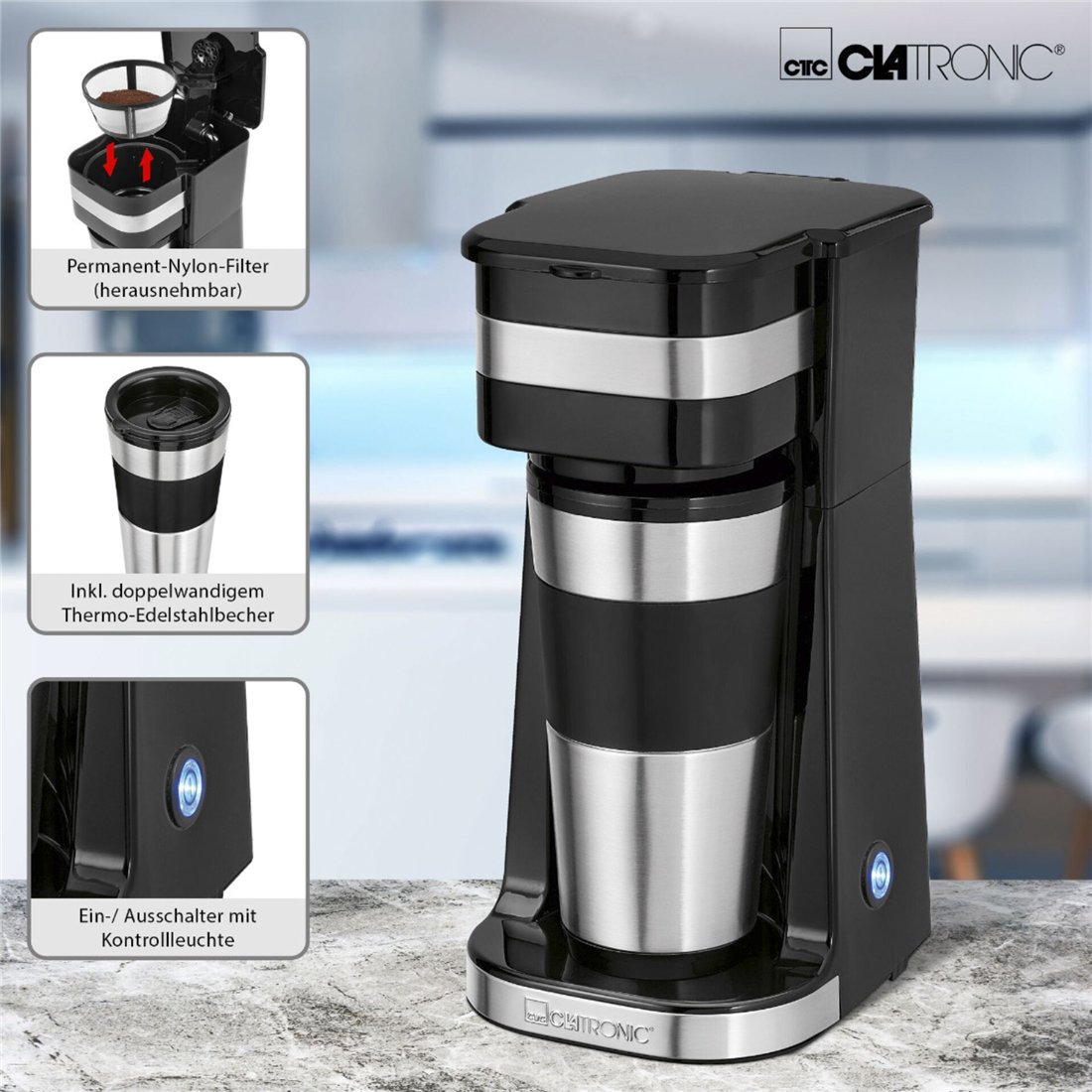 Clatronic KA 3733 Coffee to go T macchina da caffè 1 tazza
