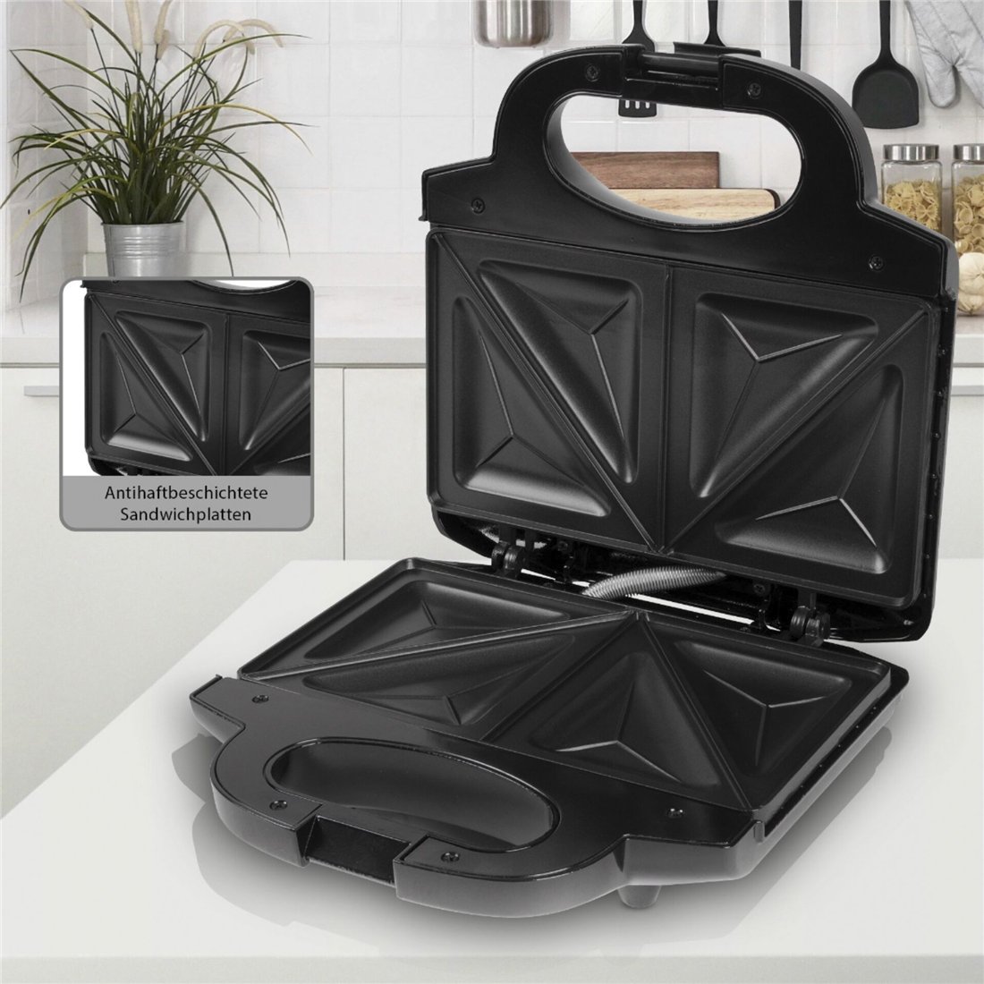 Clatronic ST 3778 nero-inox piastra da sandwich per 2 sandw.