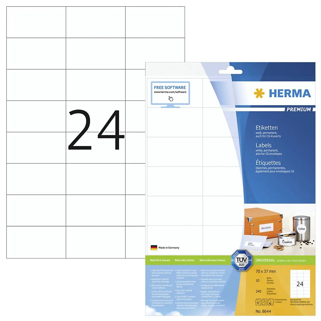 Herma etichette 70x37 bianco 10 fogli A4 240 pezzi 8644