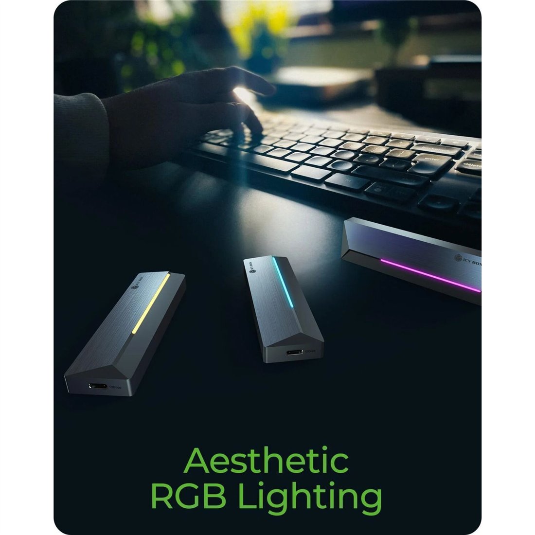 ICY BOX IB-1826MCL-CU31 USB-C M.2 NVMe & SATA SSD Gehäuse RGB