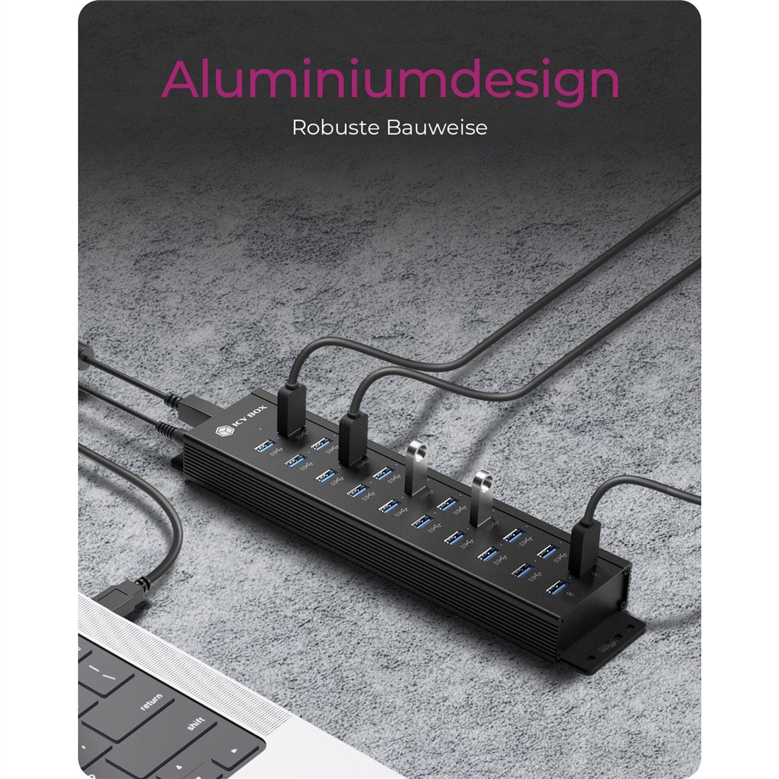 ICY BOX IB-HUB1720-U3 18+2 Port USB Hub, 96W Aliment.
