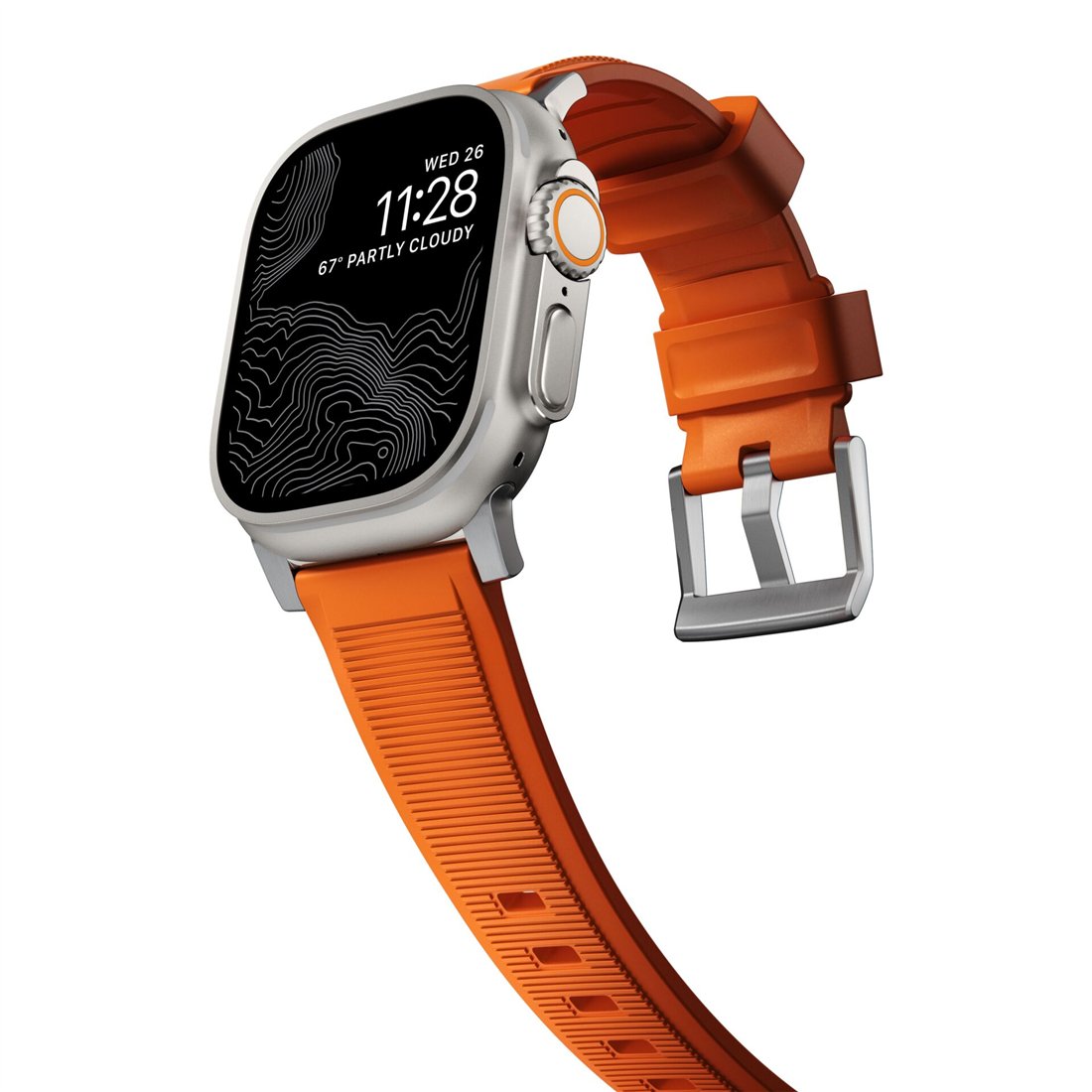 Nomad Rugged Strap Ultra Orange Connector Silver 42/44/45/49mm