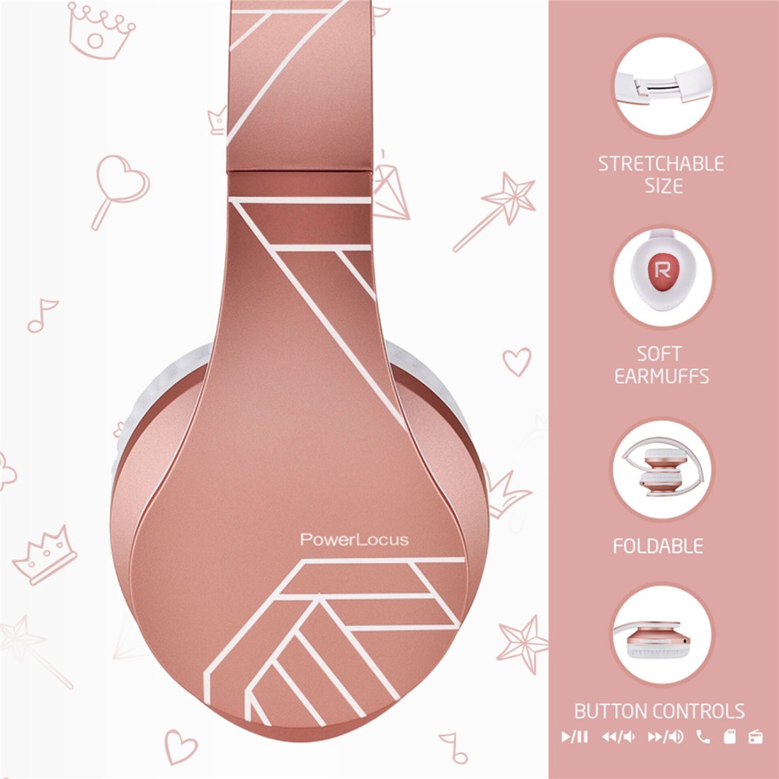 PowerLocus P2 Kids cuffie per bambini rosa oro