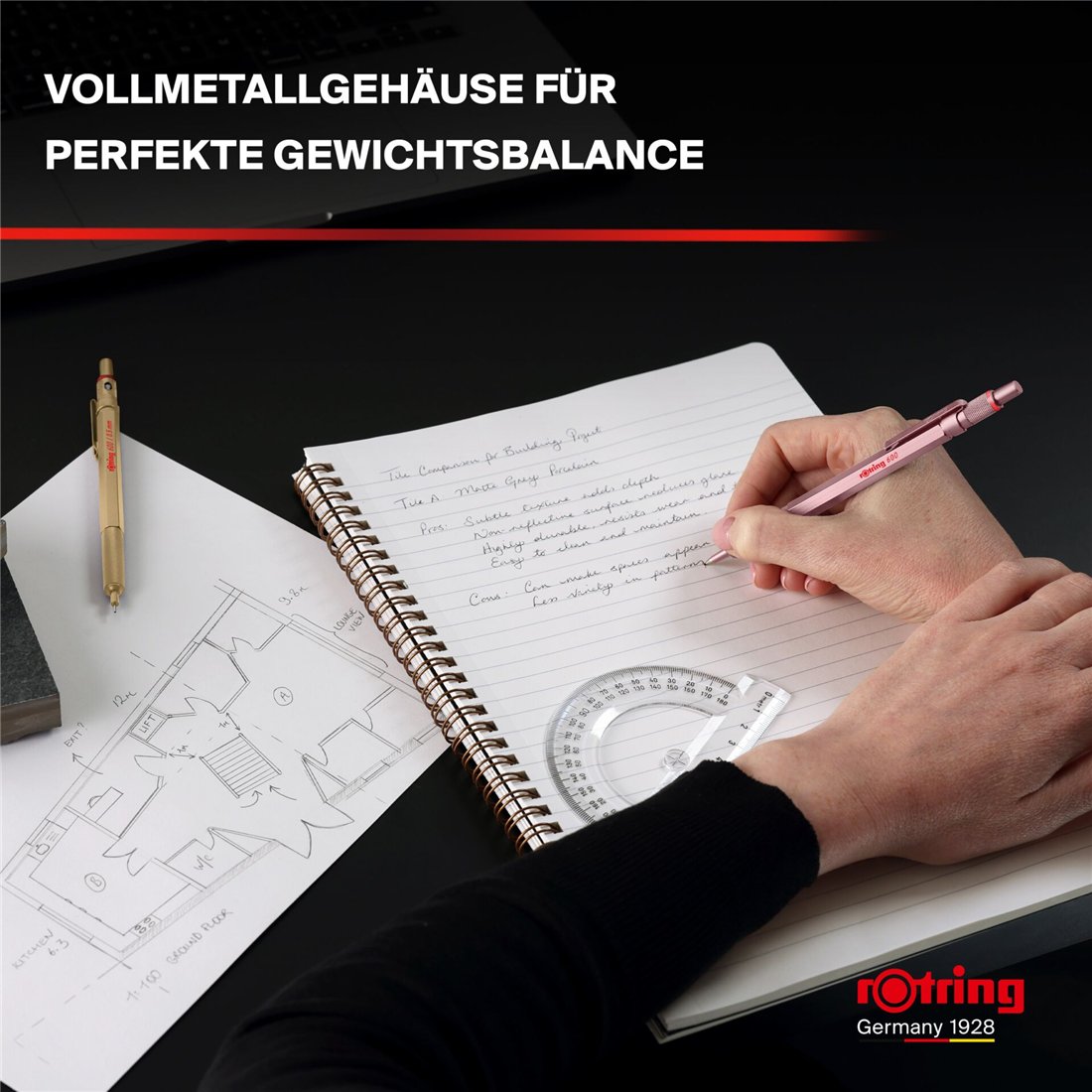 rotring 600 matita a mina fine metallic-oro rosa 0,5 mm