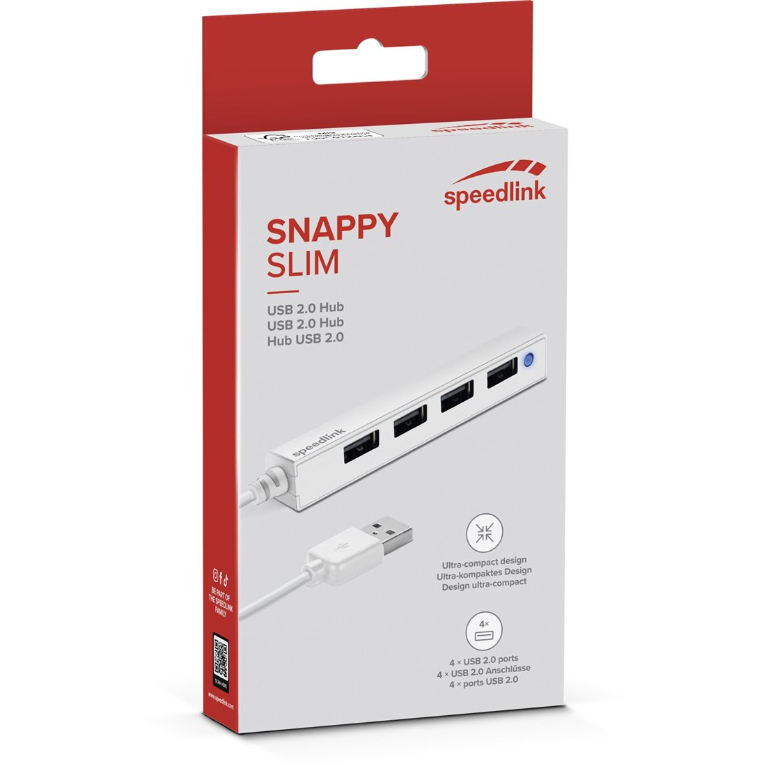 Speedlink SNAPPY SLIM USB Hub 4-Port, USB 2.0, Passive, white