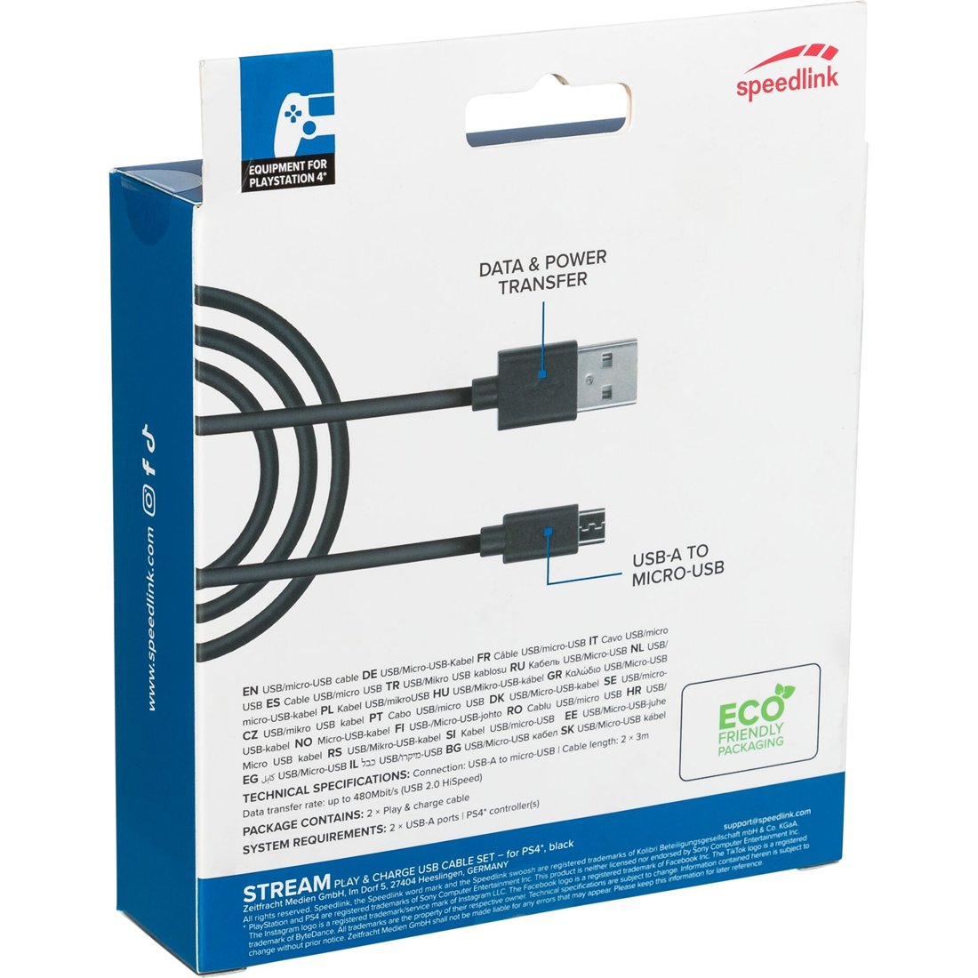 Speedlink STREAM Play & Charge USB Cable Set for PS4 black