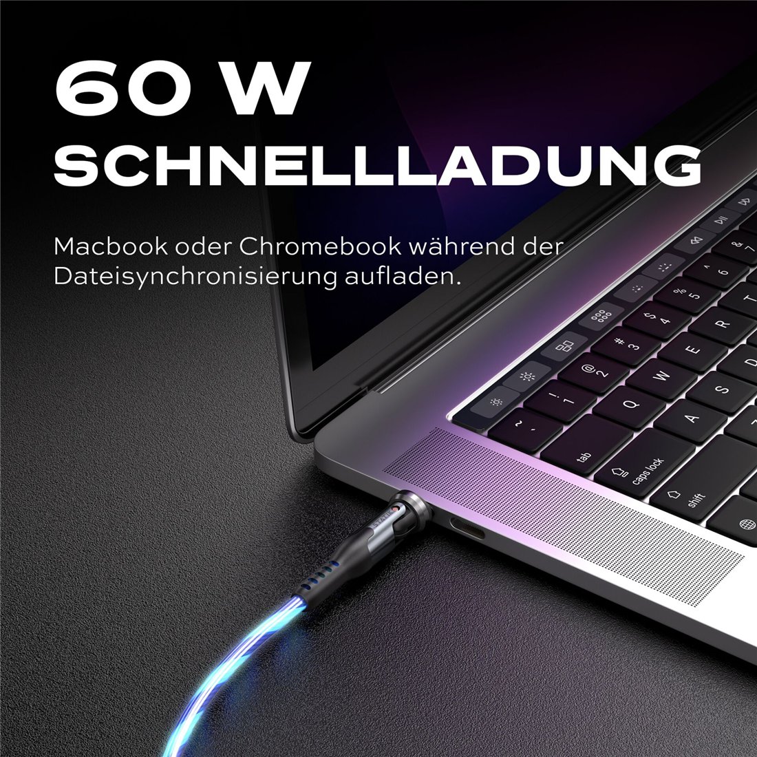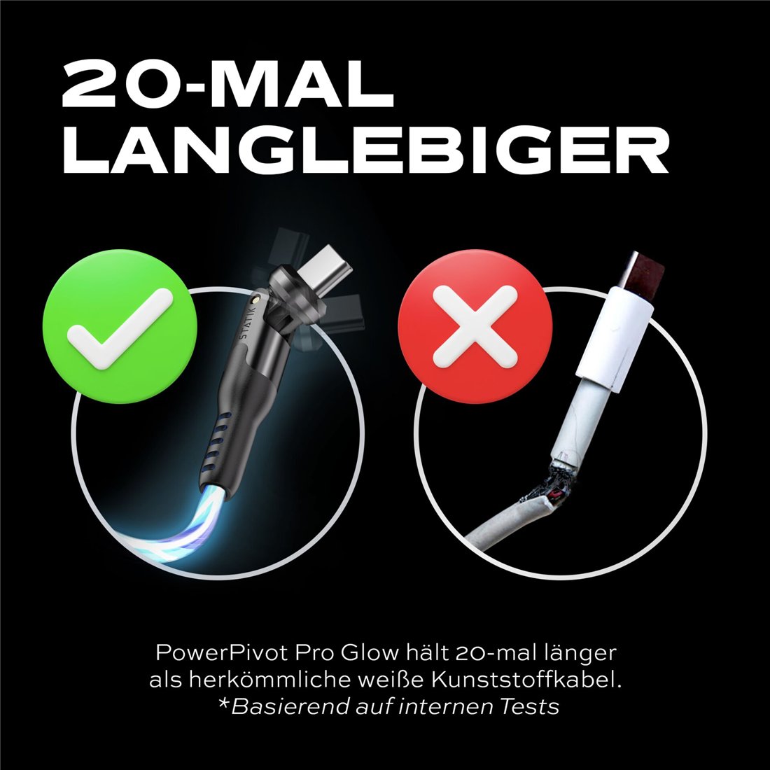 STATIK PowerPivot Pro rotating 2-in-1 USB-C Cable Blue Glow 2m