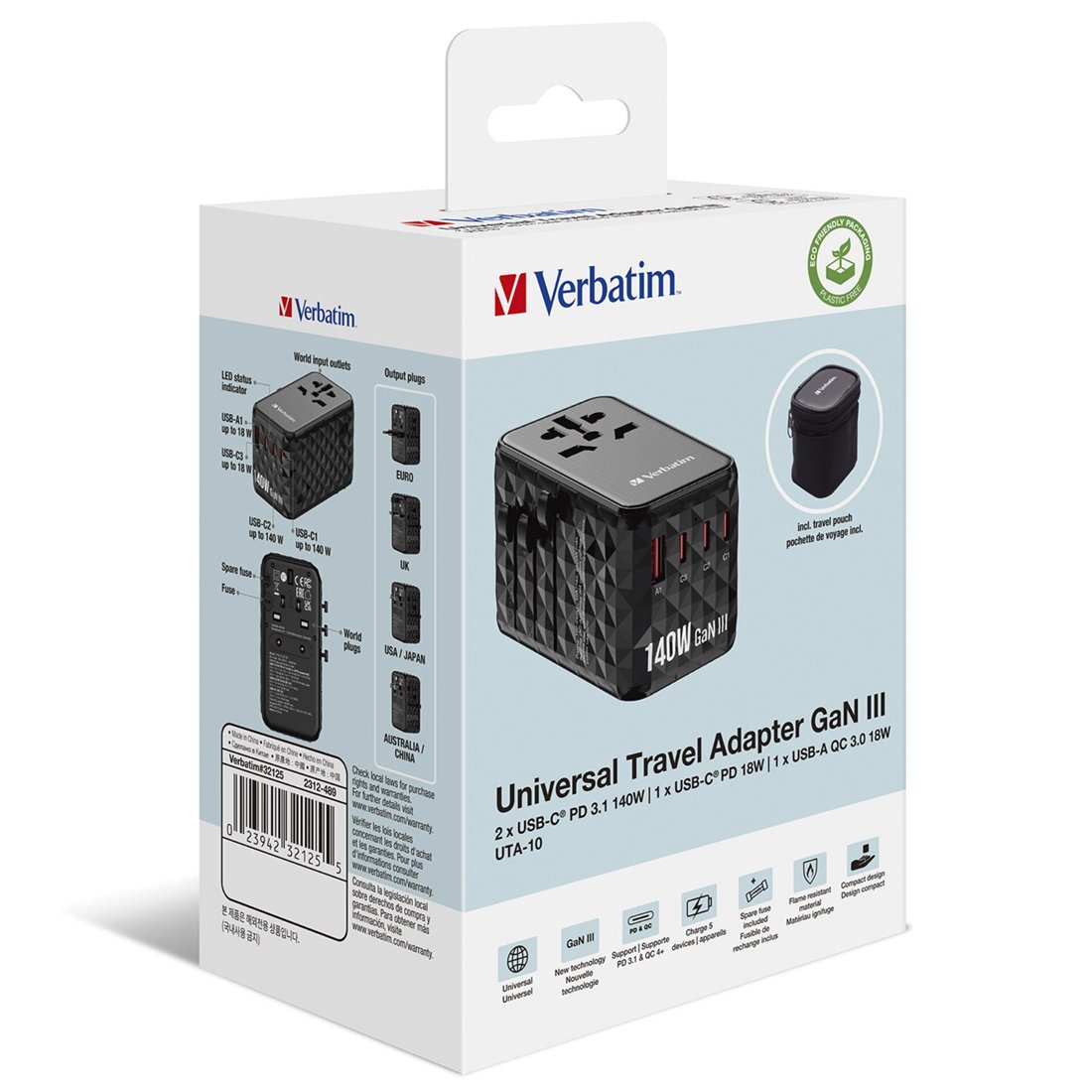 Verbatim GaN III adattatore da viaggio univer.140W UTA-10 32125