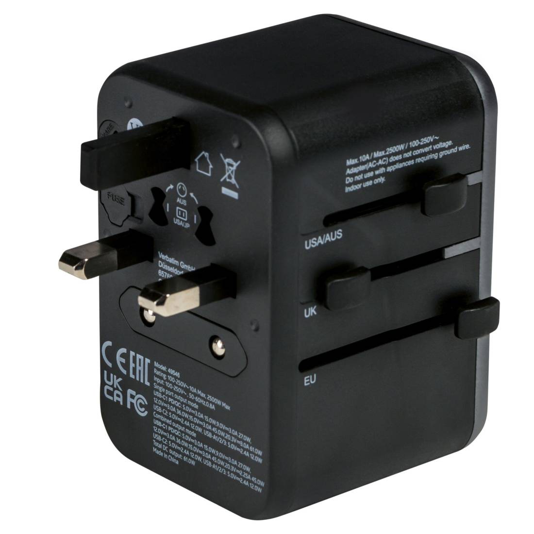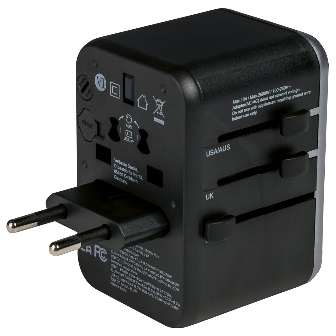 Verbatim Uni.Travel Adapt.UTA-04 USB-C 61W 2xUSB-C 3xUSB-A 49546